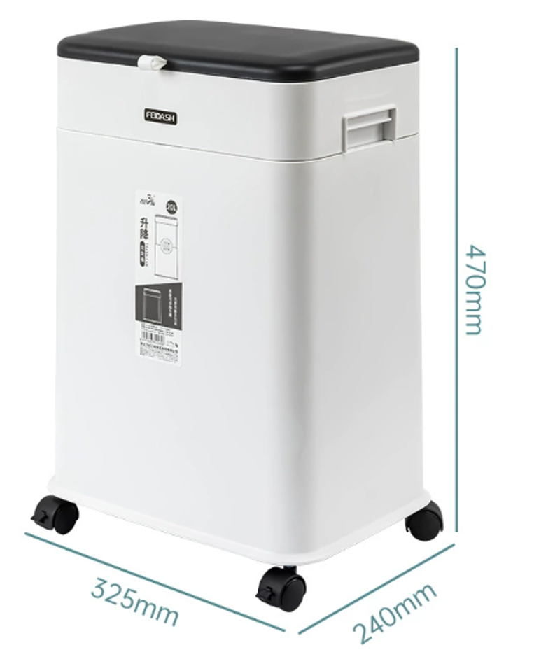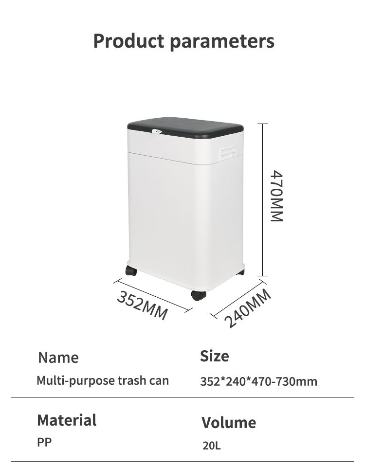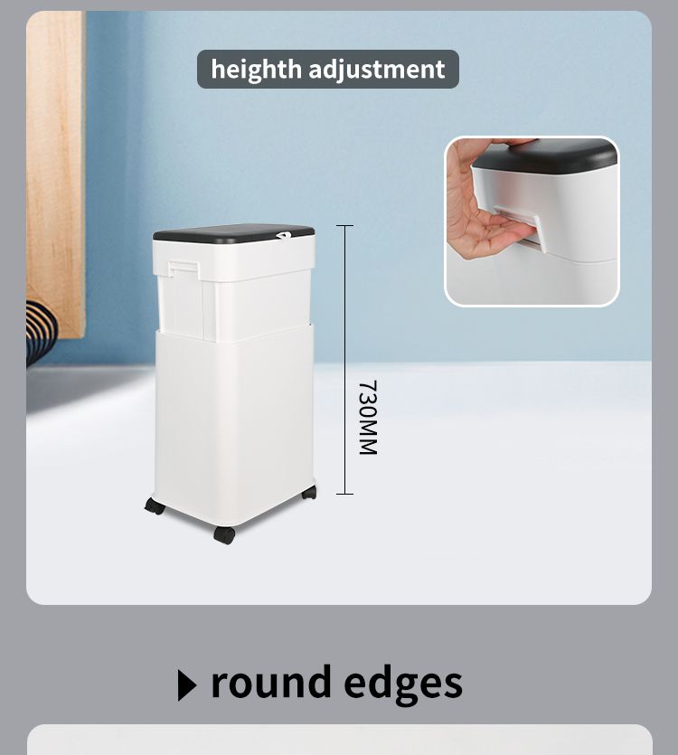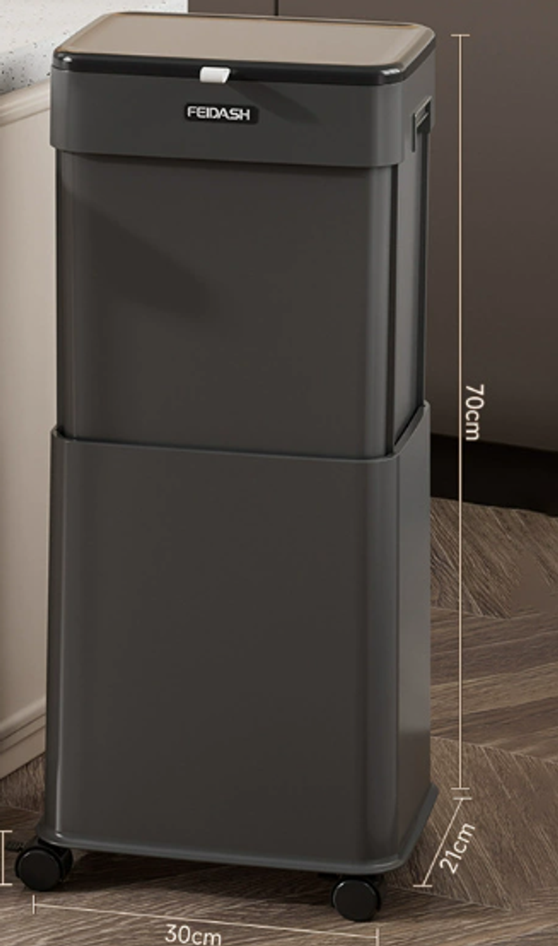Caixote do lixo com tampa, móvel e ajustável com rodas