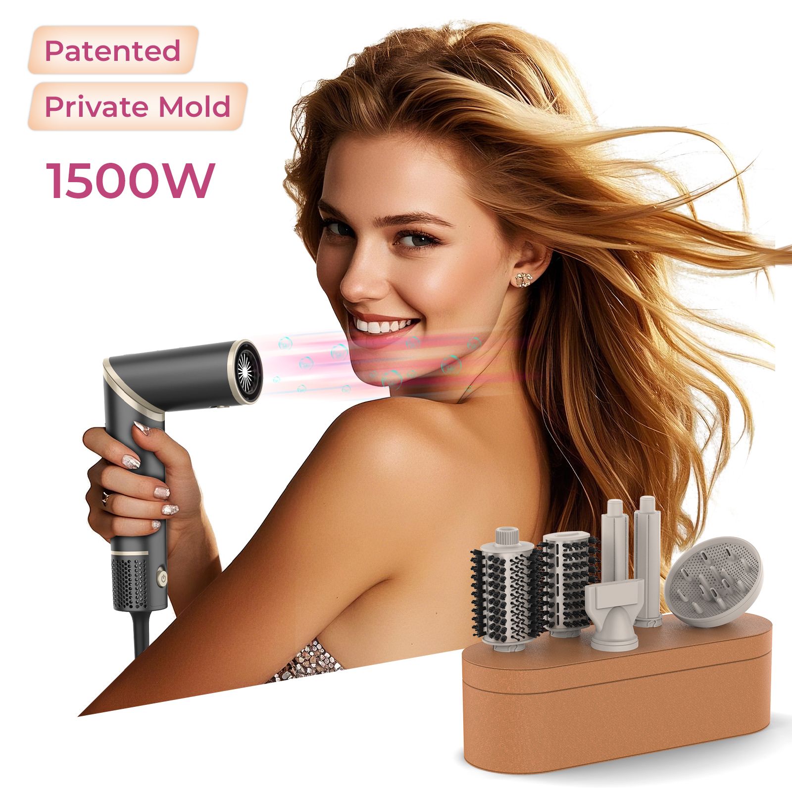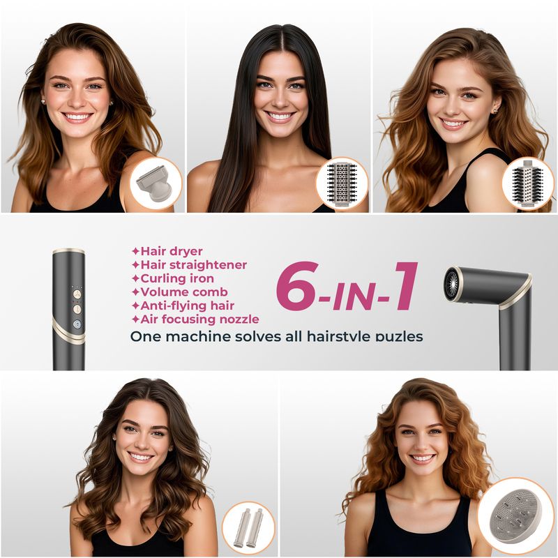 Secador de cabelo 6 em 1 novo, pente multifuncional, modelador de caracóis e ferro de alisar